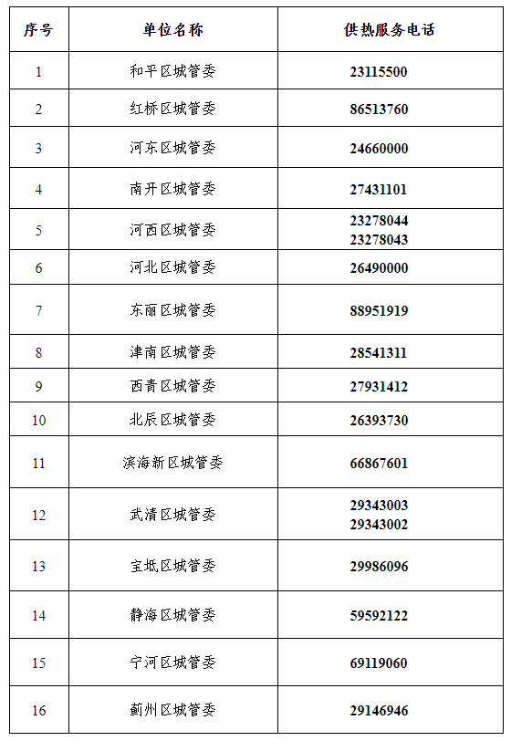 各区供热服务电话