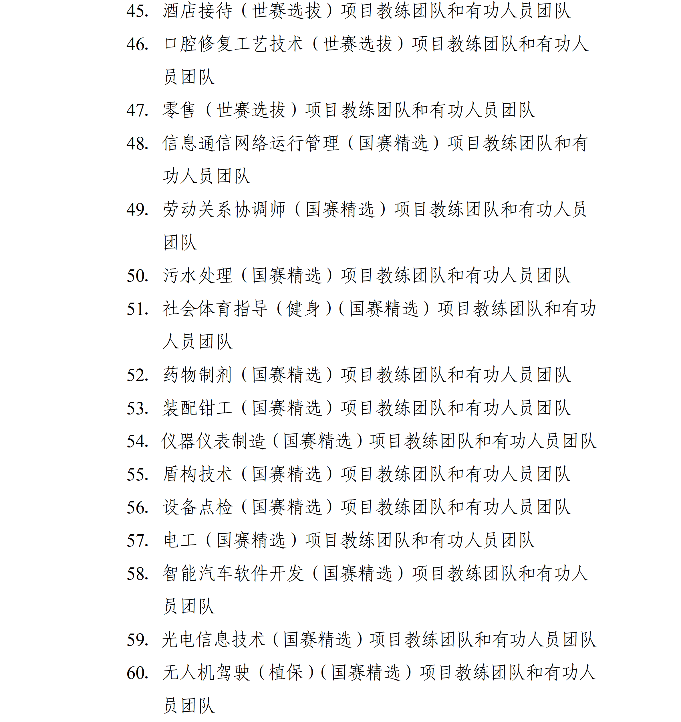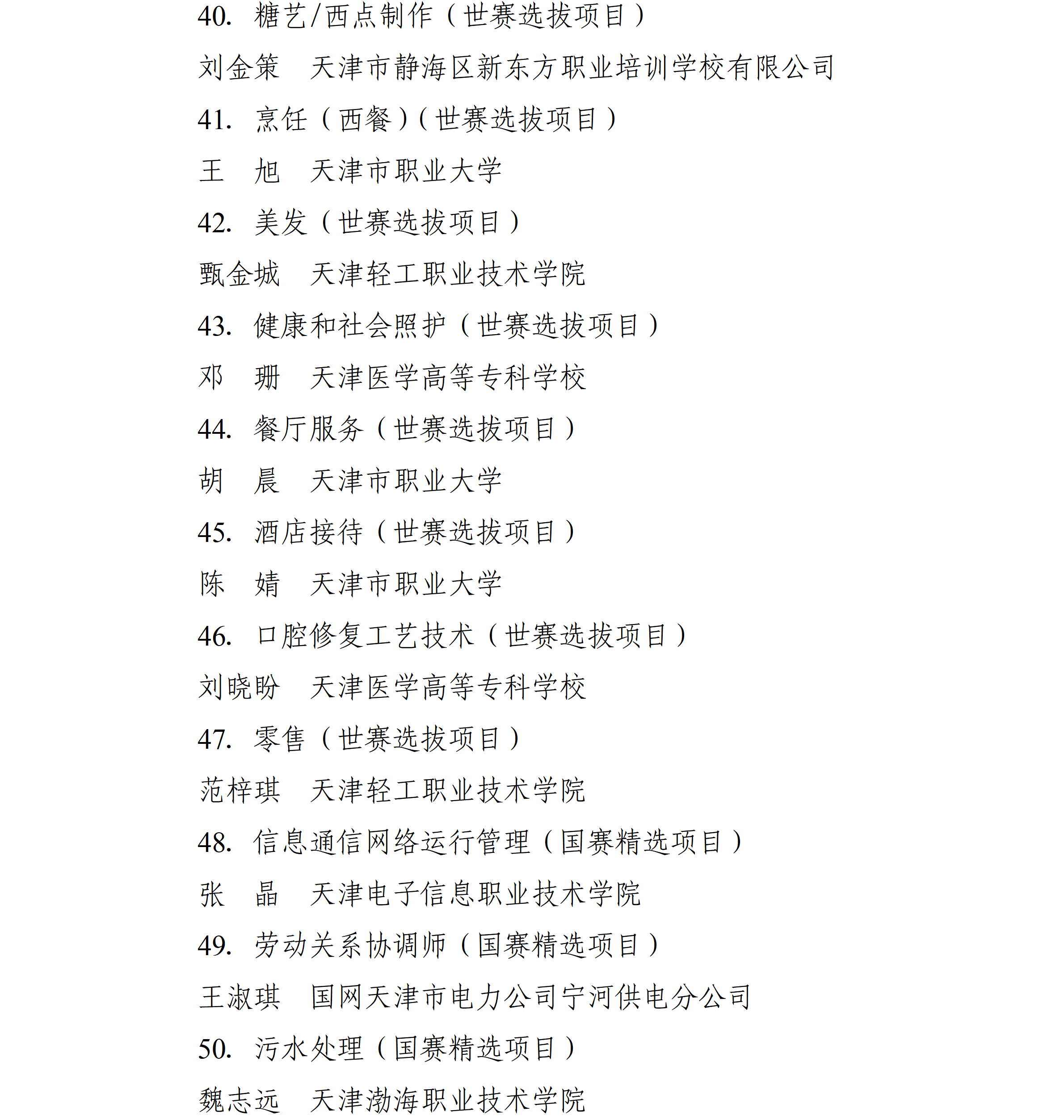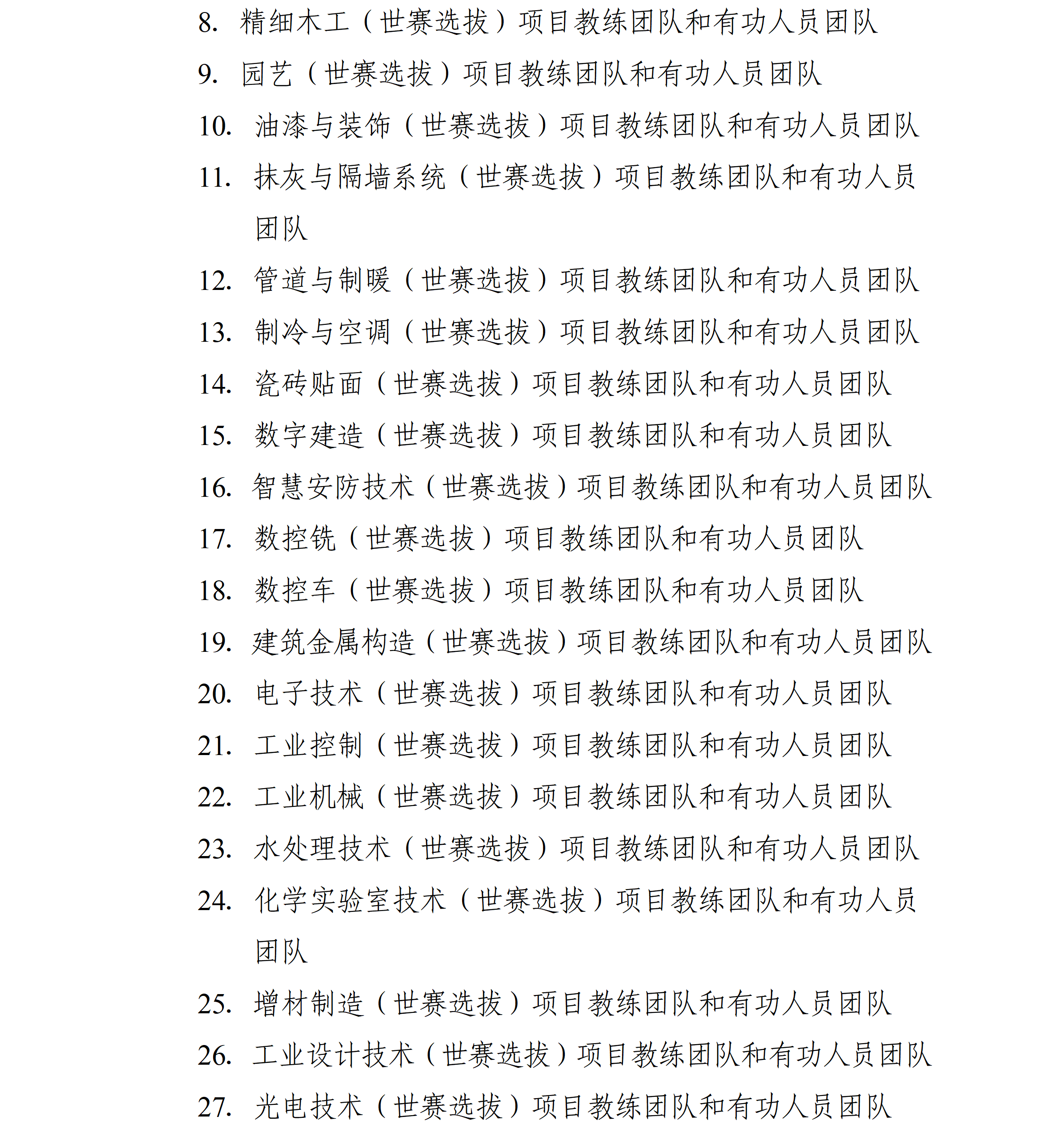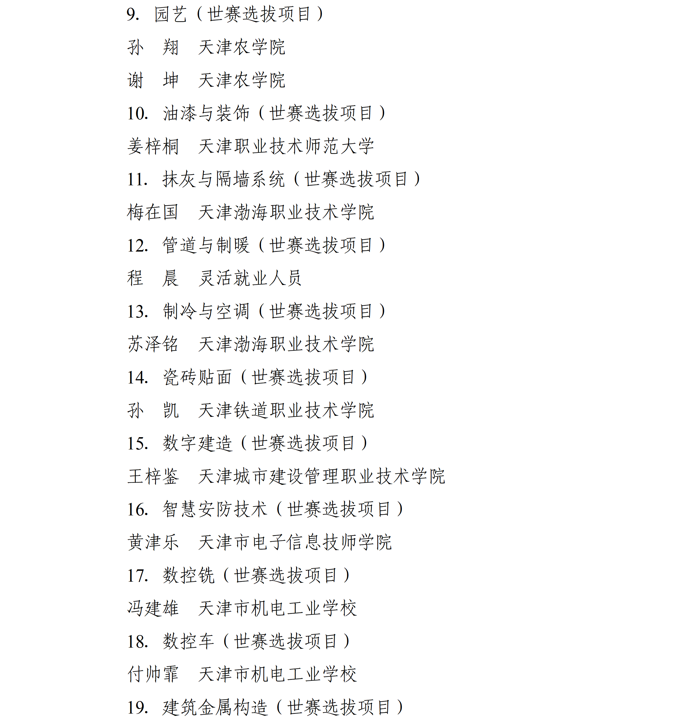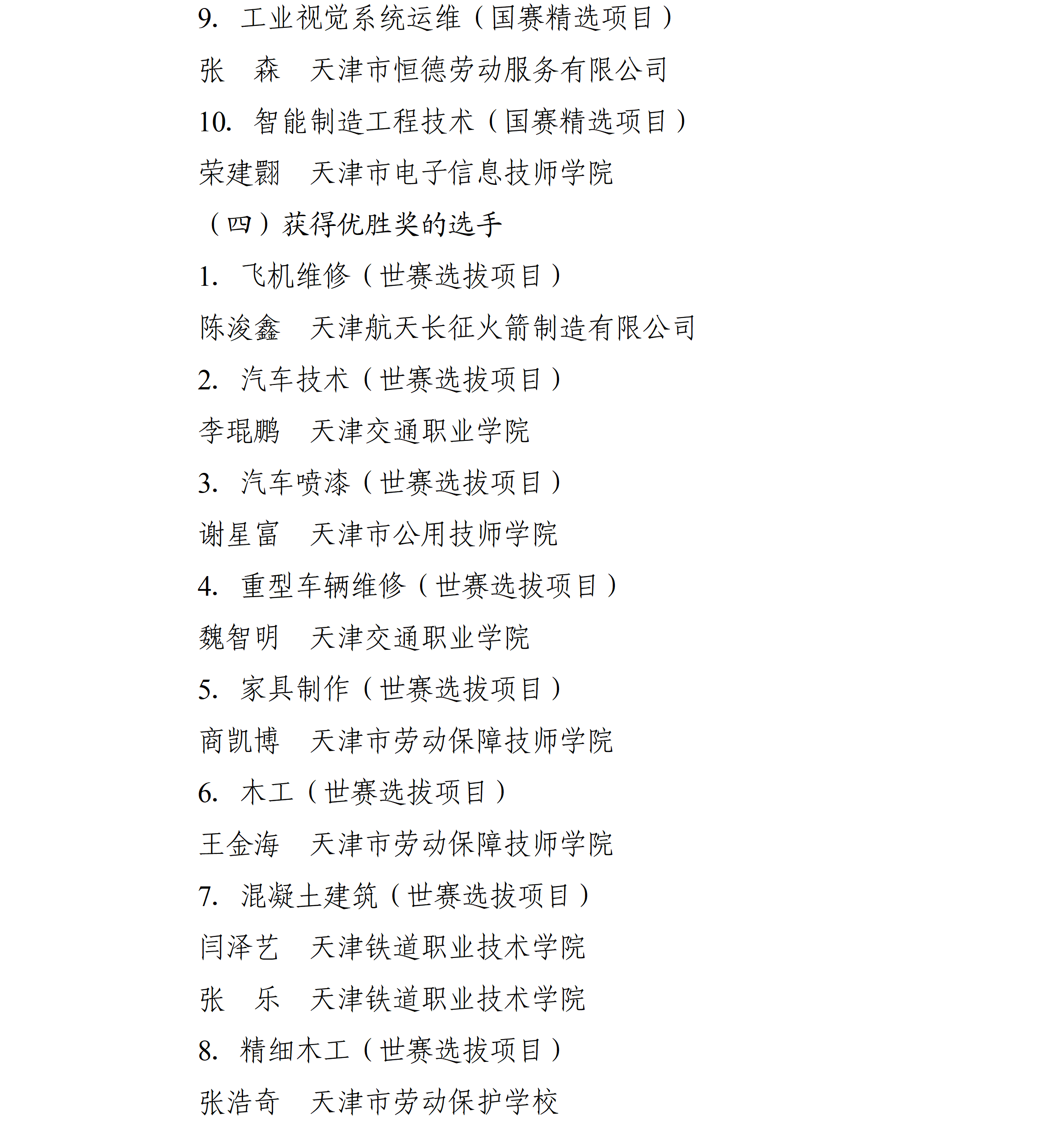 中华人民共和国第三届职业技能大赛于2025年9月19日至23日举办,本市派出116名选手参加全部106个赛项的角逐,4个项目摘得金牌、3个项目夺得银牌、10个项目获得铜牌,77个项目取得优胜奖,特别是“工业4.0”、“信息网络布线”等项目连续三届蝉联冠军。为大力弘扬劳模精神、劳动精神、工匠精神,动员激励本市广大劳动者特别是青年一代建功立业、创新创造,市人民政府决定对本市获奖选手、获奖项目教练团队和有功人员团队给予表扬和奖励,现通报如下: